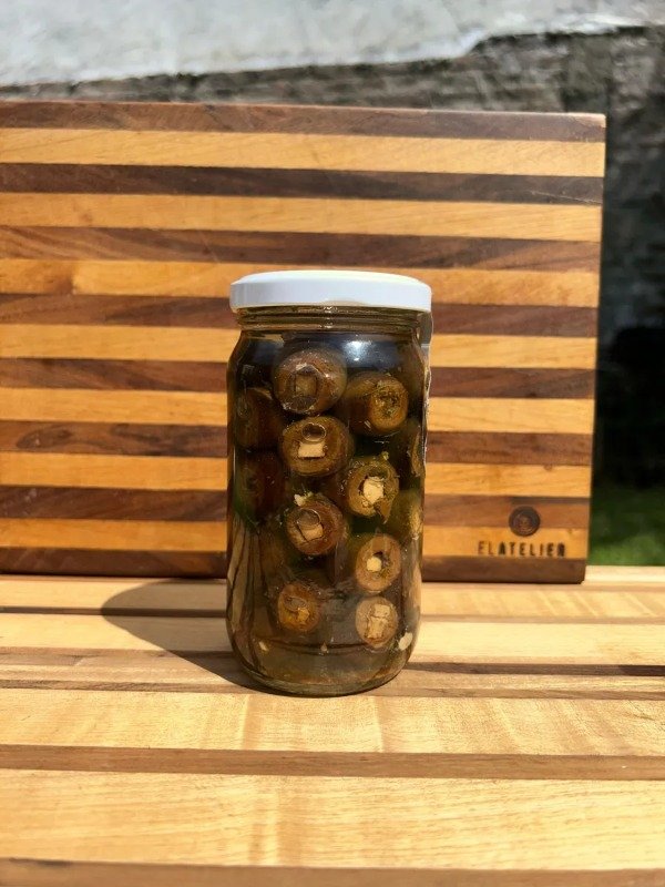El relleno de queso roquefort aporta un toque cremoso y sabroso que complementa a la perfección el característico sabor de las aceitunas negras. Este producto es libre de gluten, lo que lo convierte en una opción ideal para quienes buscan disfrutar de un aperitivo delicioso sin preocupaciones. Además, su presentación en frasco asegura que cada aceituna se mantenga en óptimas condiciones.