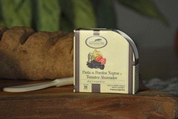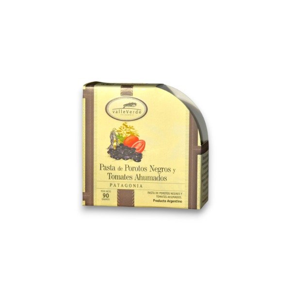 Porotos negros cocidos y triturados junto a tiernos tomates rehidratados y ahumados, logran esta pasta ideal para acompañar quesos duros y picadas.