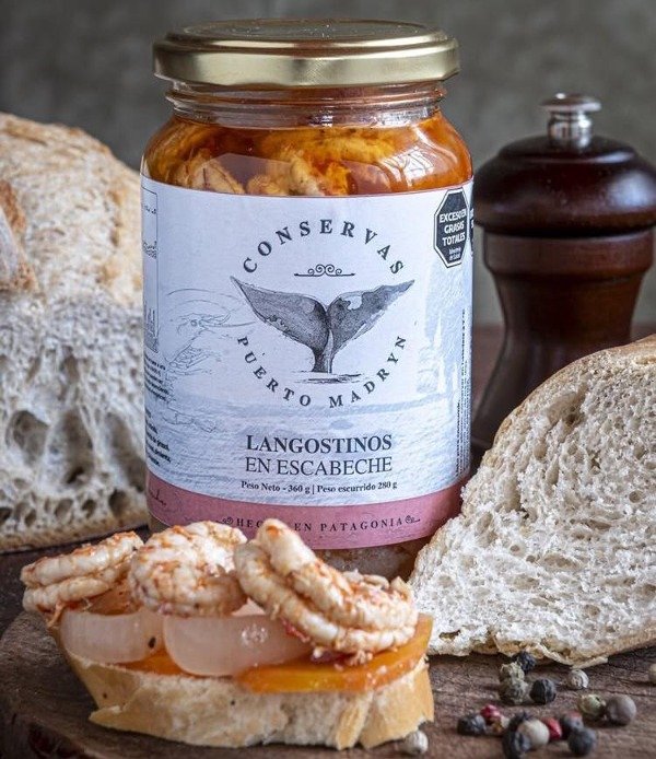 Nuestros langostinos en escabeche son elaborados artesanalmente en Puerto Madryn, destacando la frescura y calidad de los mariscos patagónicos en una receta tradicional que realza su sabor inigualable. Marinados con una combinación justa de cebolla, zanahoria, aceite, vinagre, sal, laurel, pimienta, ají molido y pimentón; ofrecen un equilibrio perfecto entre textura y gusto. Son ideales para acompañar picadas, ensaladas o disfrutar con pan fresco, llevando a tu mesa todo el auténtico sabor del mar.