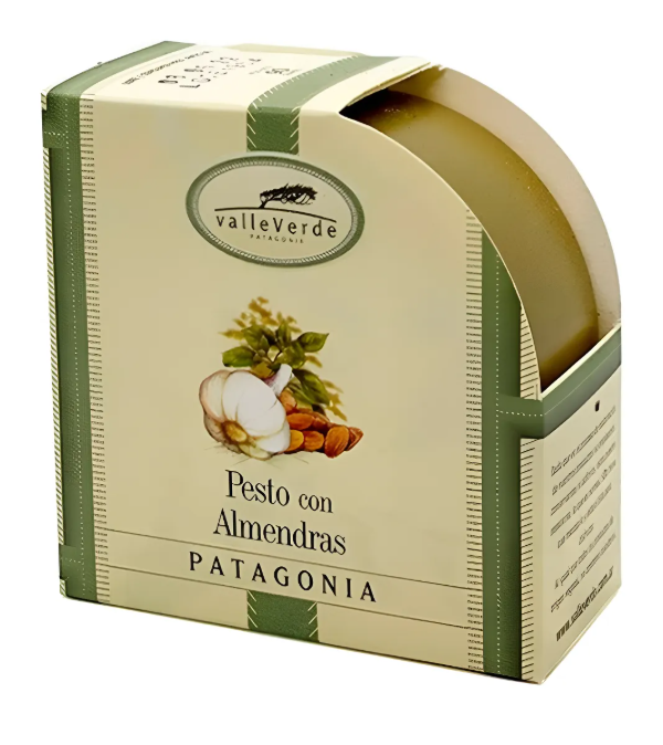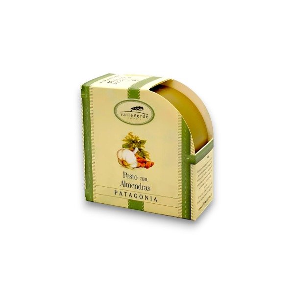 Un pesto genovés, donde el ajo y la albahaca aportan todo su aroma mientras las almendras trituradas brindan un toque crocante dando relieve a su textura. No sólo para condimentar pastas sino también carnes, panes y tostadas en entradas o picadas.